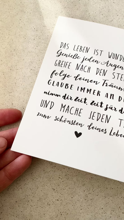 Dieser wunderschöne Spruch erinnert an die wirklich wichigen Dinge im Leben. Eine tolle Karte zum verschenken oder die eigene Pinnwand :)!